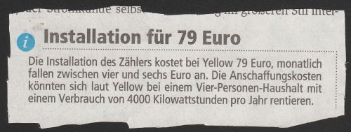 Ca. € 200,- im ersten Jahr für den 'neu­en, intel­li­gen­ten' Stromzähler ....