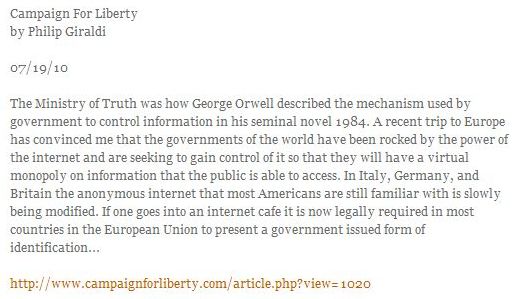 Es besteht ein Mißverhältnis zwischen dem, was z.B. unsere Regierung über jeden Einzelnen von uns weiß, verglichen mit dem, was wir (wirklich) über die Regierung wissen: