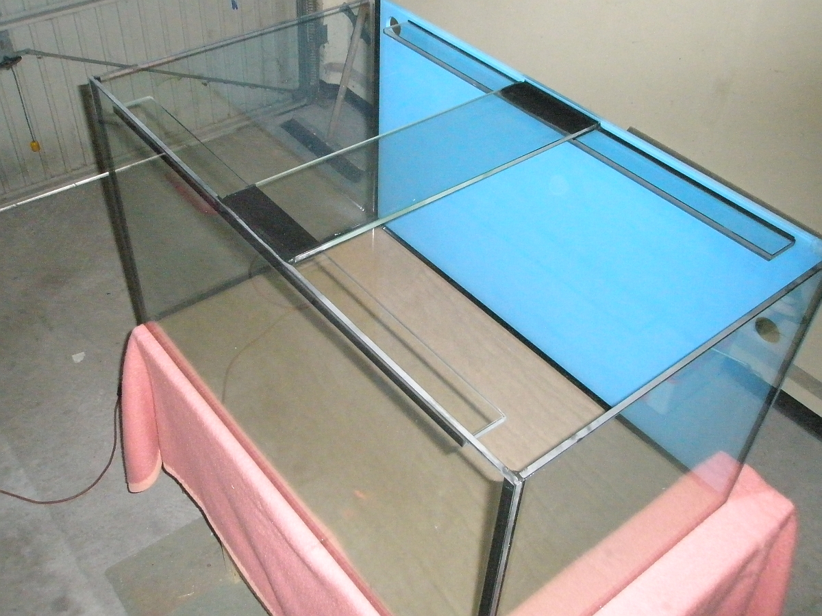 So langsam nimmt auch die Innengestaltung - auf einigen Seiten im Internet sprechen die Meerwasseraquarianer etwas hochtrabend von "aquascaping" - Form an .... die grundsätzliche Einteilung in L-förmigen Riffaufbau und viel freien Schwimmraum ist schon zu erkennen, wenn auch noch der feinere Bodengrund auf den Korallenkies verteilt ist wird es noch deutlicher werden ....