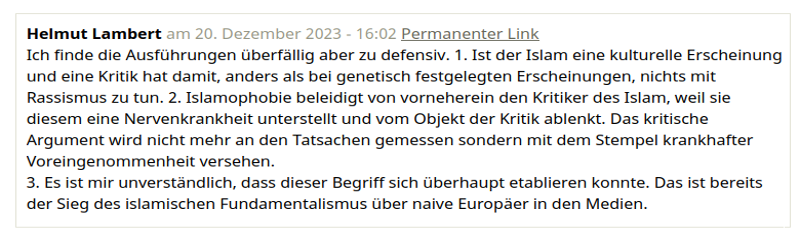 Die Gefahr, die vom *legalistischen Islam* ausgeht wird in weiten Kreisen der Gesellschaft nicht erkannt, verdrängt oder idealisierte Fremdbilder ersetzen die tatsächlichen Gegebenheiten: