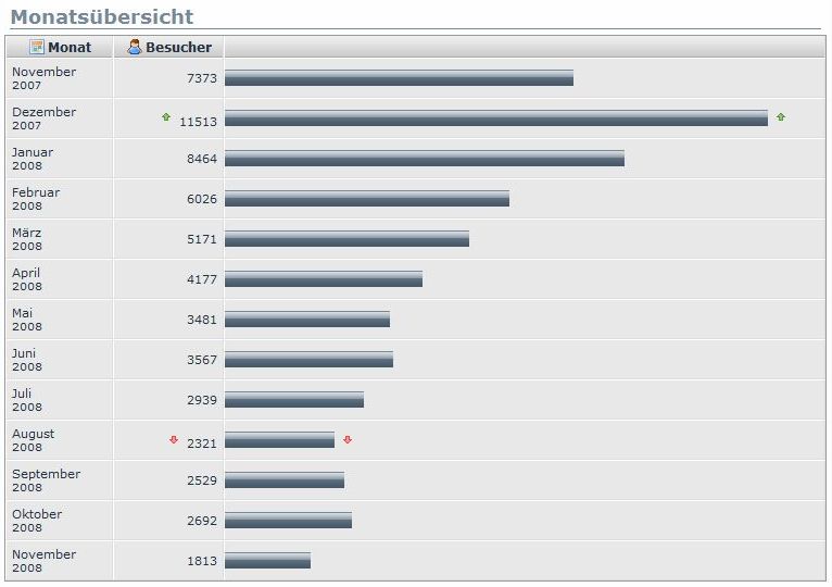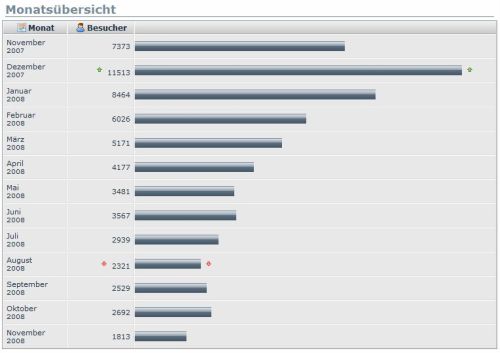 Dafür, daß nicht nur bei mir sol­che rück­läu­fi­gen Zah­len zu ver­zeich­nen sind spricht die Tat­sa­che, daß die Bei­trags-Kenn­zif­fern* (im glei­chem Zeit­raum) auch eine gerin­ge­re (Gesamt-) Akti­vi­tät für Beiträge/Kommentare auf­wei­sen .... 'mal sehen, wo das noch hinführt.