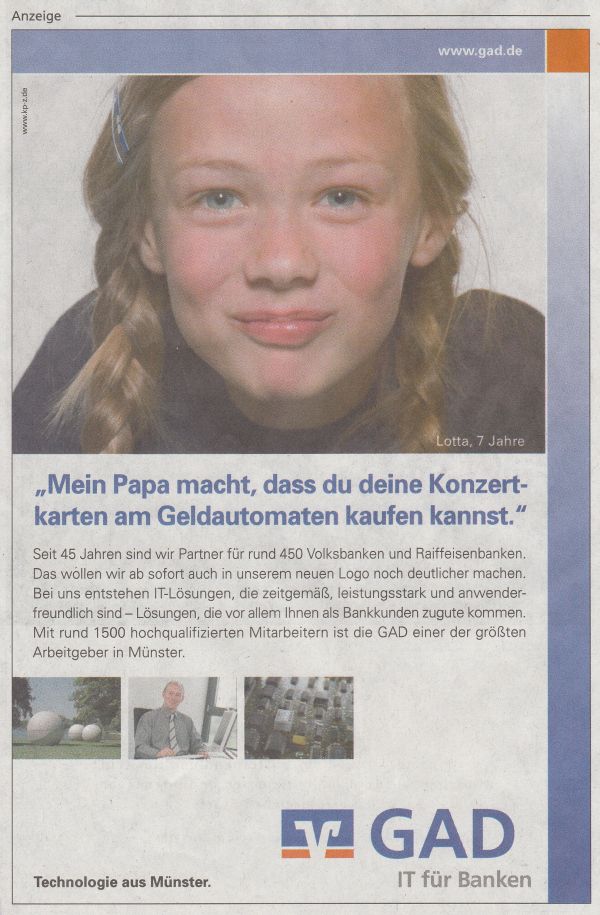 Ich habe Zwei­fel, ob das in den bei­den gezeig­ten Fäl­len [Abbil­dun­gen recht & links, 'scans' aus der "Mün­ster­schen Zei­tung vom 31.10. und 01.11.] sowie auch in den vor­her bereits ange­spro­che­nen [ Image­wer­bung Image­wer­bung (2) ] Fäl­len wirk­lich der Fall ist. In einer Anzei­ge geht es um die Bestel­lung von Thea­ter­kar­ten per Mobil­te­le­fon* in der ande­ren Anzei­ge um die Auf­la­dung des Mobil­te­le­fons am Geldautomaten ....