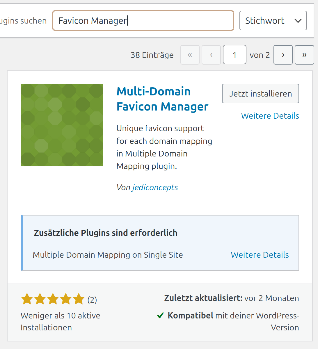 ich habe das Plug­in °°Favicon Mana­ger°° gefunden