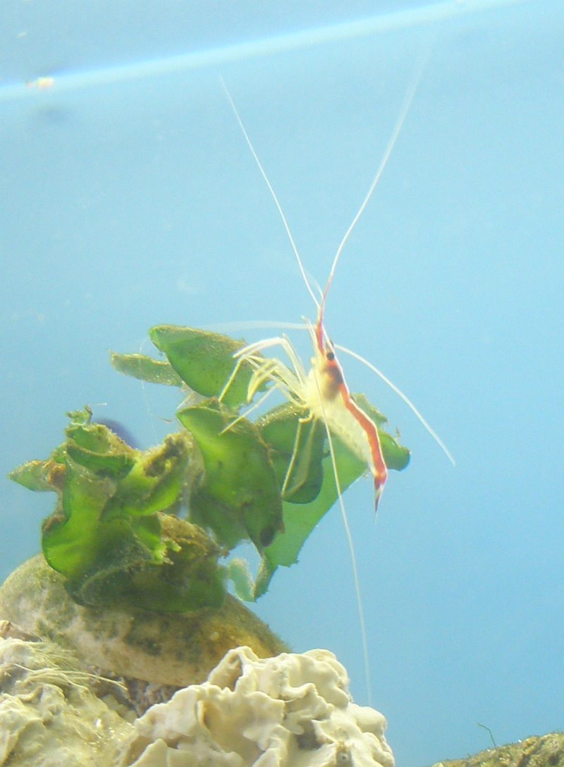 Vor eini­gen Wochen hat­te ich die Gele­gen­heit ein paar 'leben­de Stei­ne' und Makro-Algen zu sam­meln - nun ist dar­aus ein Meer­was­ser­becken gewor­den in dem z.Zt. zwei Spe­zi­es leben ....