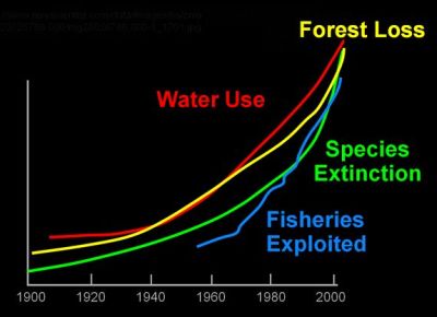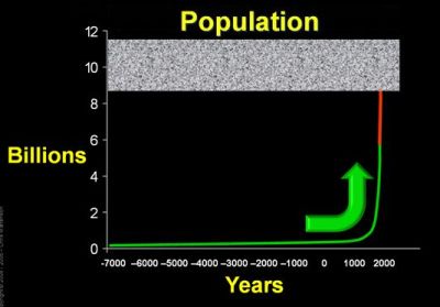 Das wäre an sich nicht schlimm, aber - wie an der oberen Kurve zu sehen ist - befinden wir uns am Beginn des 'roten Bereiches', der dem grauen Balken zustrebt .... der graue Balken aber repräsntiert das absolute Maximum, was unser Planet an Bevölkerung ernähren kann!