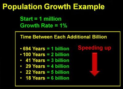 Es wird deutlich, daß das beschleunigte Wachstum der Menschheit dazu führt, daß in immer kürzeren Abständen die Weltbevölkerung um eine weitere Milliarde Menschen wächst.