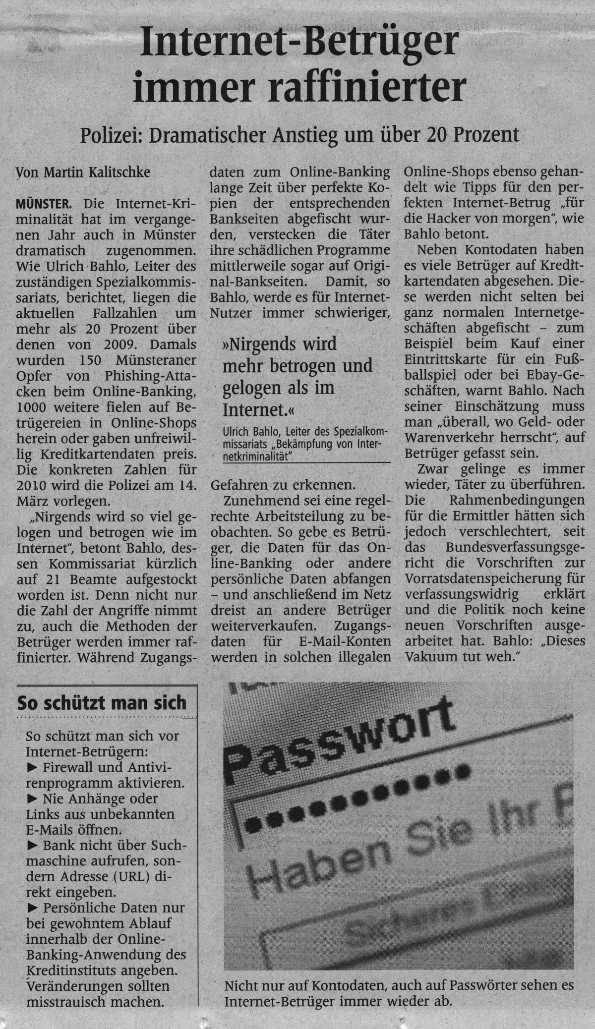 "20% über den Zahlen von 2009" liegen die Delikte - und das waren, in 2010, 150 Phishing-Fälle und ca. 1.000 'Sonstige' .... Aha. Demnach waren also 2009 125 Fälle von Phishing und ca. 835 'sonstige Internetkriminalitätsfälle' ....