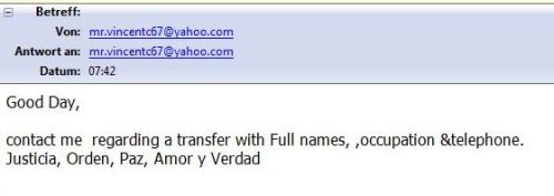 Auch bei den Spam­mern ist offen­bar ZEIT = GELD - min­de­stens vom Inhalt des E-Mails her beur­teilt das ich heu­te in mei­ner mail­box fand: