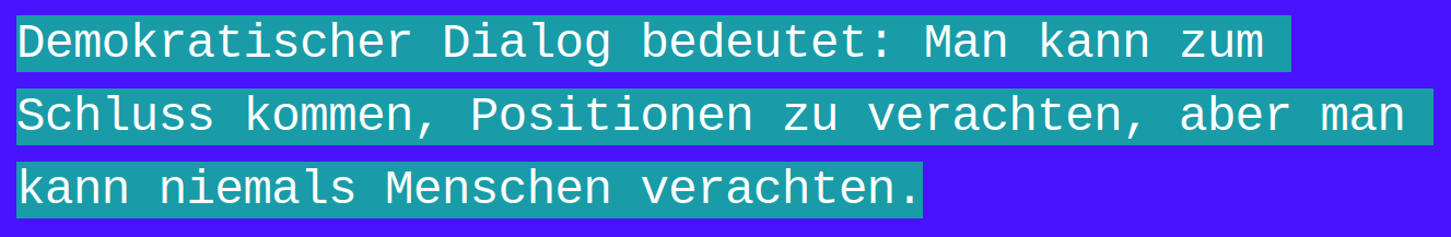 „.. Zugleich stimmt es auch, dass ich bestimmte Grundsätze vertrete, die ich tatsächlich in keinem Fall widerlegt haben will.“ Warum also unter dieser Vorbedingung überhaupt in einen Dialog eintreten?