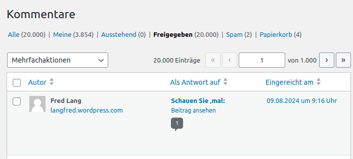 "Noch ein Kommentar und die 20.000 sind voll ...."