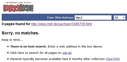 Die "way-back-Maschi­ne" kann noch** nicht hel­fen, denn dort gibt es eine Zeit­ver­zö­ge­rung von sechs Monaten ....